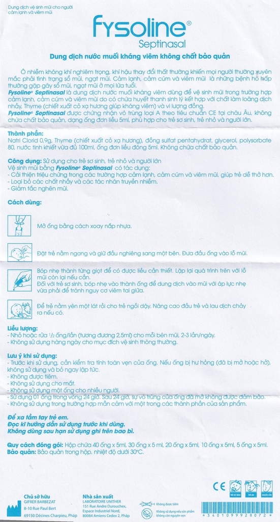 Fysoline Septinasal Gifrer sử dụng cho trẻ sơ sinh, trẻ em và người lớn.