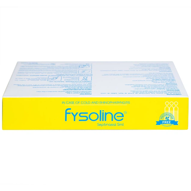 Fysoline Septinasal Gifrer là loại nước muối sinh lý kháng viêm. Đây là sản phẩm không phải kháng sinh nhưng có tác dụng hỗ trợ điều trị các bệnh viêm, nhiễm khuẩn như viêm mũi, sổ mũi, nghẹt mũi an toàn cho trẻ sơ sinh và trẻ nhỏ.